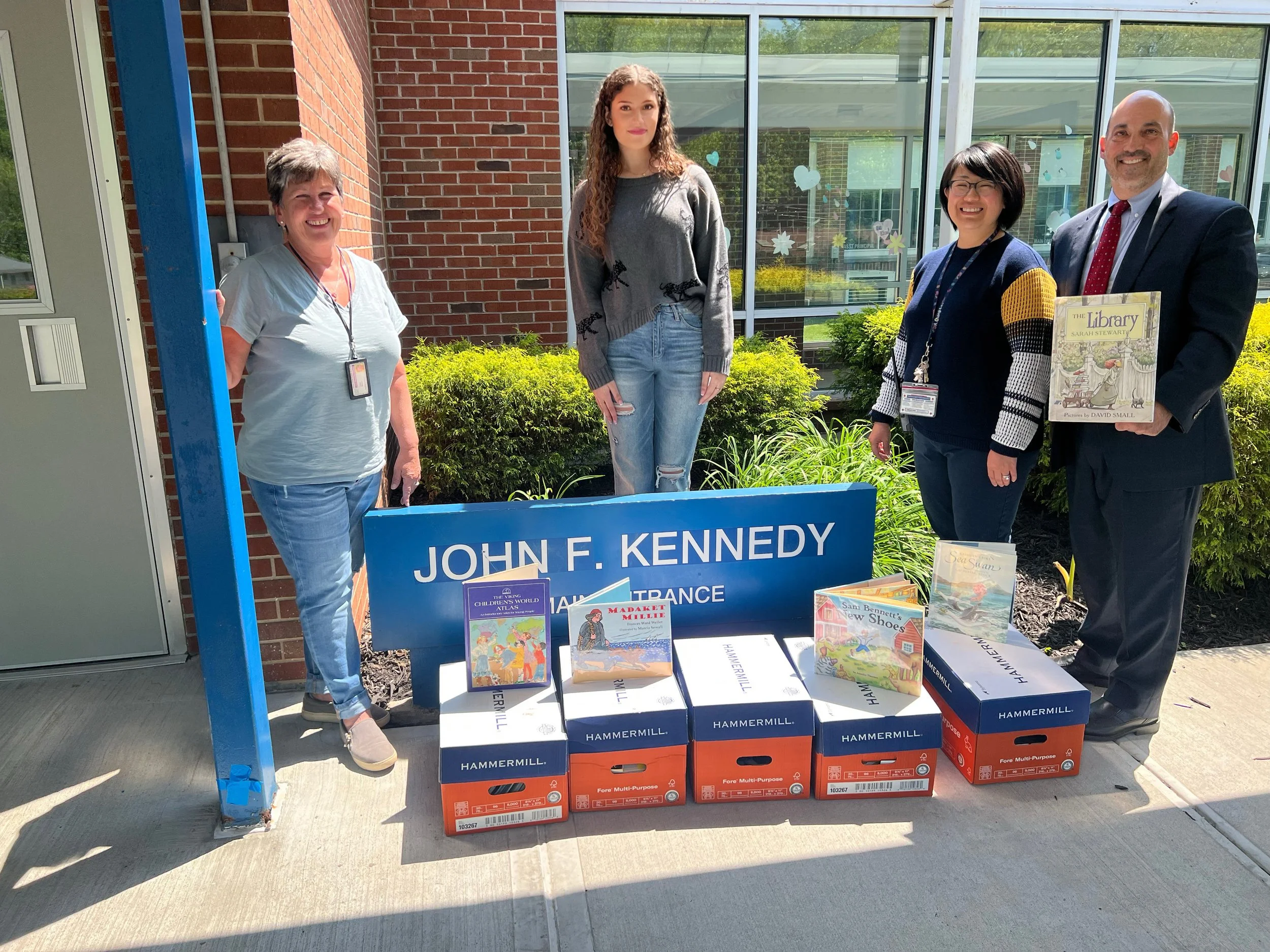 On May 18th, 2023, our founder and president, Abigail Monasebian, was invited as a guest speaker to John F. Kennedy Elementary school to introduce Books Defy Borders to the students, the principal, the assistant principal, and a variety of teachers. She gave a 30-minute long presentation to her audience, and at the end of the presentation, the children gave her 5 boxes of books (over 150 books) for Books Defy Borders. Find the links to the Great Neck Public Schools Instagram and Facebook posts dedicated to Abigail’s presentation by clicking the photos presented on this page.